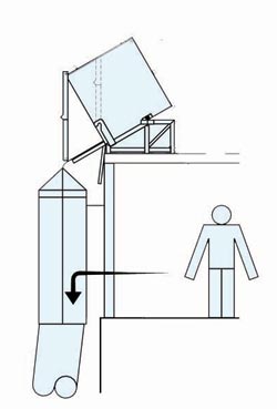 cijev i platforma izlaze iz kućišta slobodnim padom te se platforma automatski napuhuje.