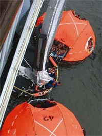 Također se otpuštaju splavi za spašavanje koje se pričvrste za platformu.